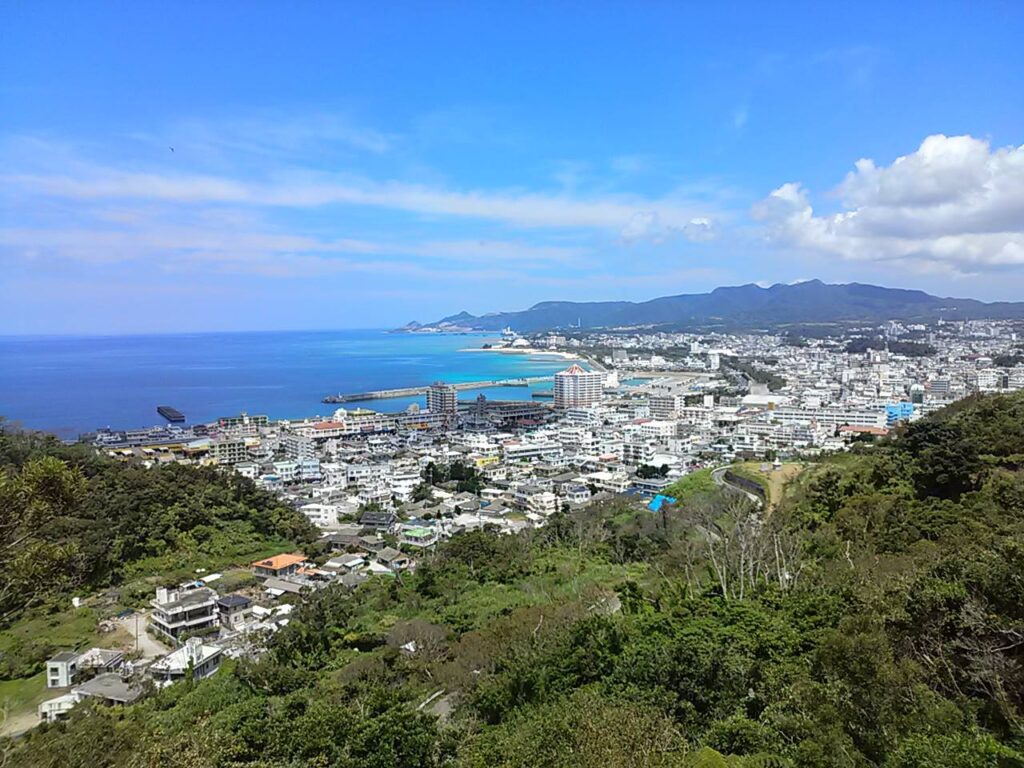 名護城から見渡す名護中心市街地と名護湾